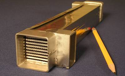 It was quickly evident that the biggest challenge for the HEP was the brazing process. State-of-the-art brazing companies reported that the thinnest foils brazed in production were 0.007" thick. We, however, were planning to build the HEP with 0.004" foil, and this seemingly insignificant difference created challenges. We found that the HEP foil components had to be treated as close-fitting sheet metal parts (because they were)! The components had to be very accurately cut & formed on precision tools. We developed many trade secrets to insure that the brazing process created the required hermitic seal without eroding through the thin foil. The HEP was successfully qualified through a 1000-hr cyclic life test and the design was protected under a patent. An accurate model of the heat exchange characteristics was empirically built from an exhaustive series of tests. |