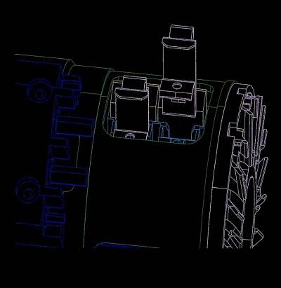 After my associate's brainstorm, it fell to me to work out the details. During this process I got familiar with 3D modeling via SDRC Ideas; this greatly helped with visualizing and selling the new design. The longer brushes needed to fit into an existing housing and required new brush-boxes & springs, meanwhile the S-G assembly process had to remain relatively unchanged. I ended up with a constant force spring (looks like a coil of shim stock) which pressed on the tapered end of the brush, and could be installed through the access ports after the brush was in place. After installation, the tops of the brushes and springs projected out of the ports, so the protective cover was redesigned with bumpouts. The upgraded S-G had to go through the re-qualification process, the most challenging part being the vibration test (10-2000 Hz, up to 20g's), which it passed. The design is documented in U.S. patent 6,724,123, assigned to Goodrich Corporation. |
